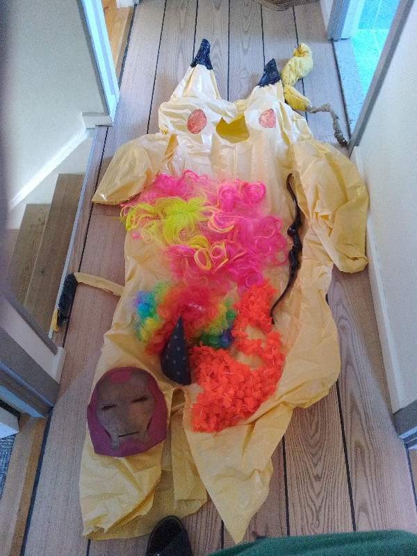 Pikachu hjemmelavet passer til voksen og stort barn, 2 Hawaii kranse, 2 parykker, bue, maske og hjemmelavet tophat. Alt eller dele kan hente på Lupinvej 15 i Ølstykke