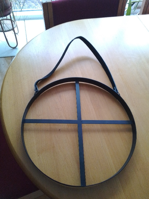 Sort metalring (diameter 40 cm) med ophæng af sort lædersnor kan afhentes Lupinvej 15 i Ølstykke