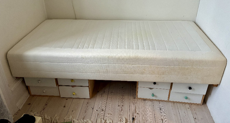 Reoler under sengen eller ben følger ikke med. Ben kan købes i IKEA. Fin stand - ikke brugt meget.